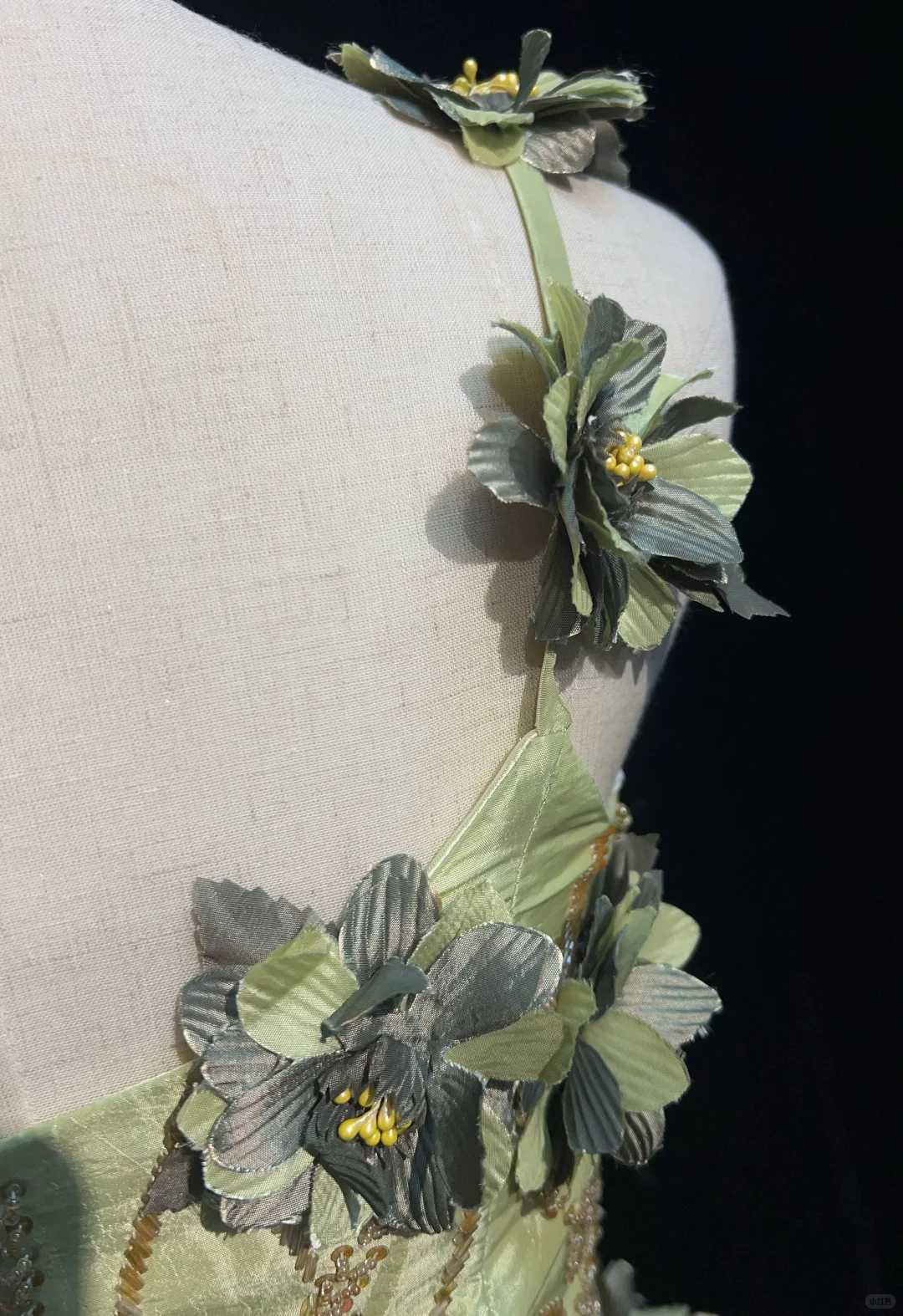 Vintage Green A Line Spaghetti Straps Beaded 3D Flower Satin Prom Dress Evening Dress SH3334