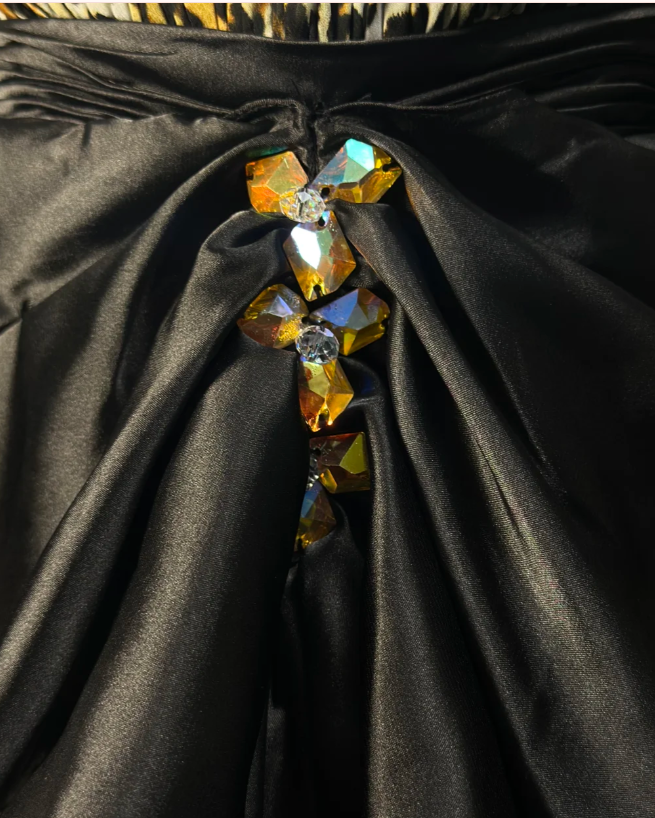 Vintage Leopard Chiffon Beaded Homecoming Dress Strapless Cocktail Dress S428