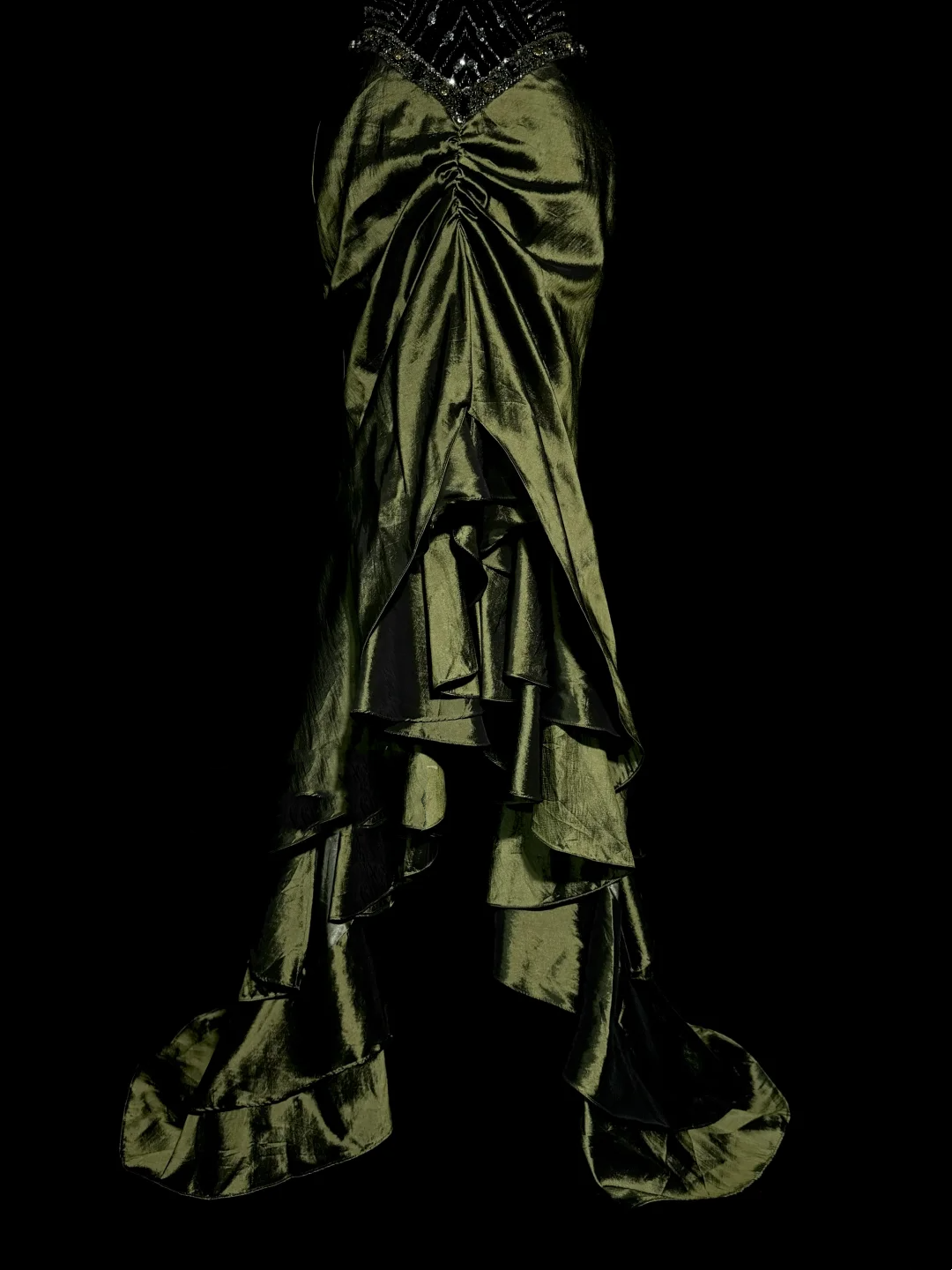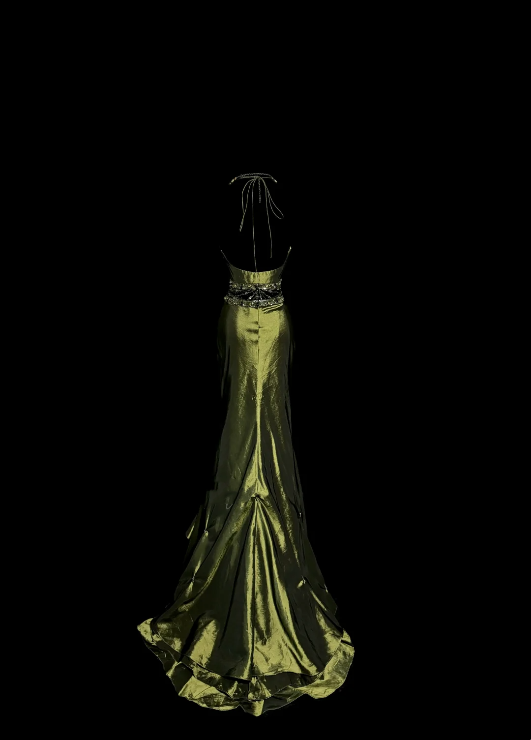 Vintage Mermaid Halter Olive Green 1950s Retro Classy Satin Long Prom Dresses Party Dress 21st Birthday Outfits Graduation Dresses W852