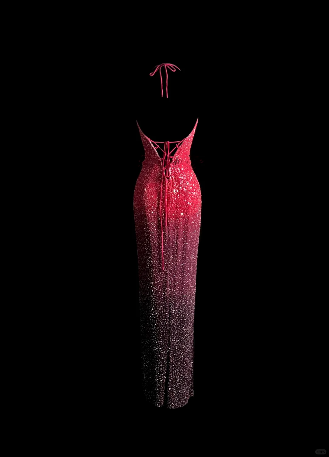 Vintage Mermaid Halter Sequin Pink Backless Long Prom Dress Party Dress Graduation Dresses DP2044