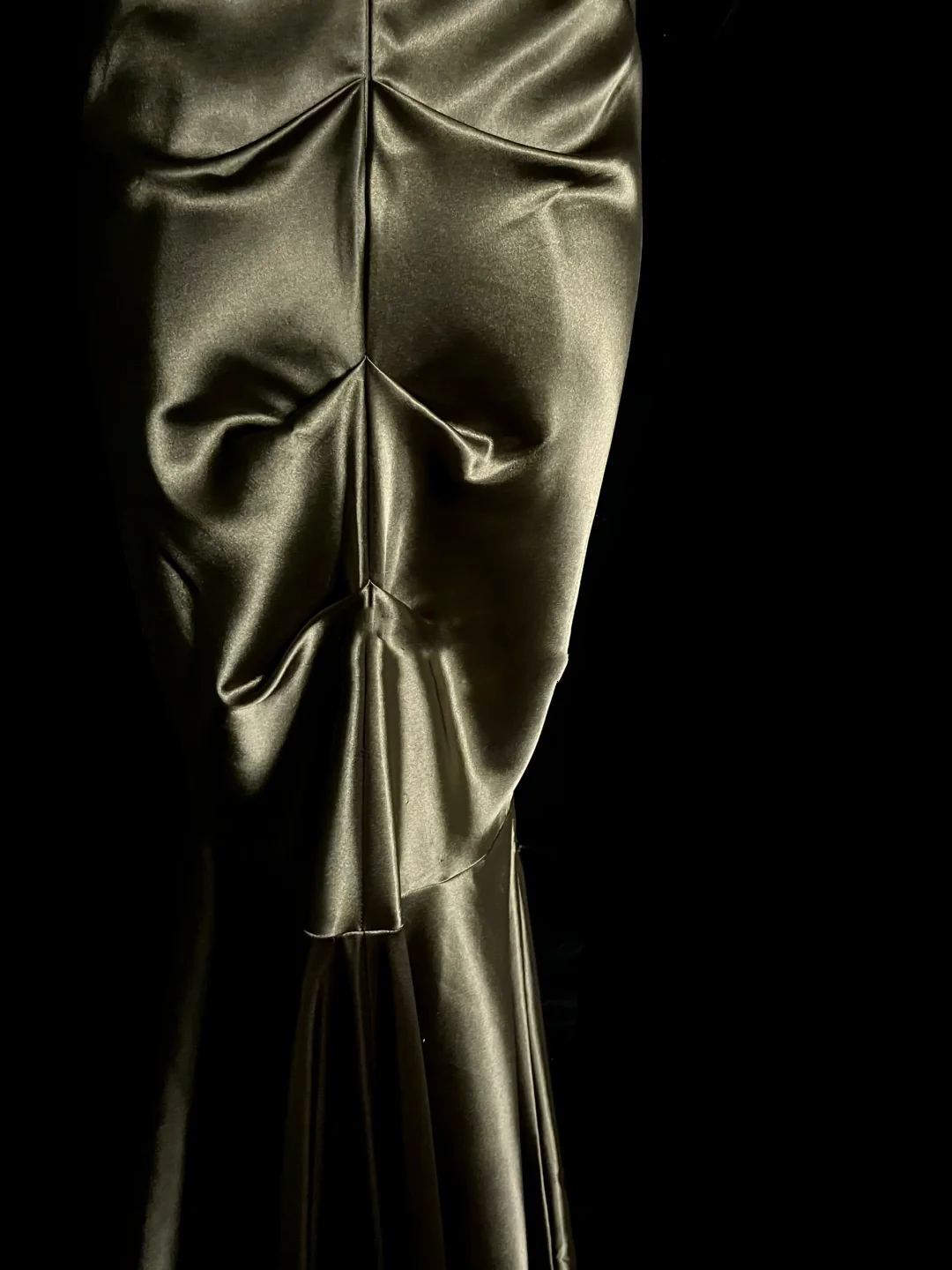 Vintage Mermaid One Shoulder Green Satin Long Evening Party Gowns Evening Formal Dresses Prom Dress DP2037