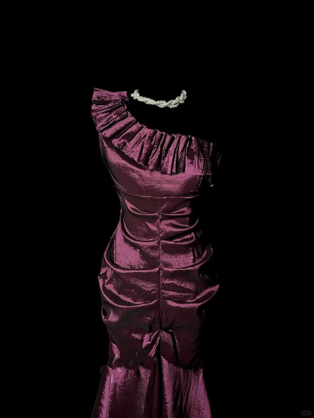 Vintage Mermaid One Shoulder Sleeveless Long Prom Gown Fairy Prom Dresses SD2962