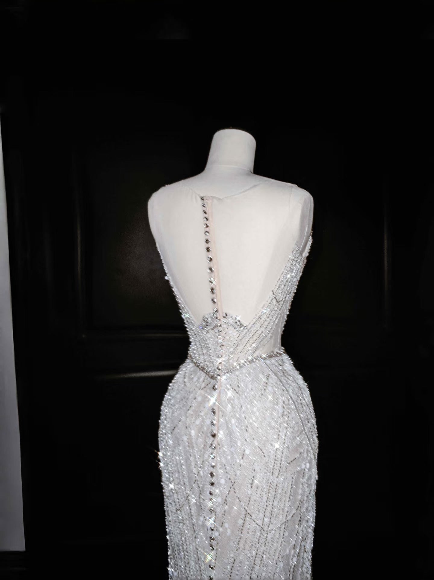 Vintage Mermaid Silver Gray Sequins Long Prom Dress Party Dress Graduation Dresses Birthday Outfits D2716