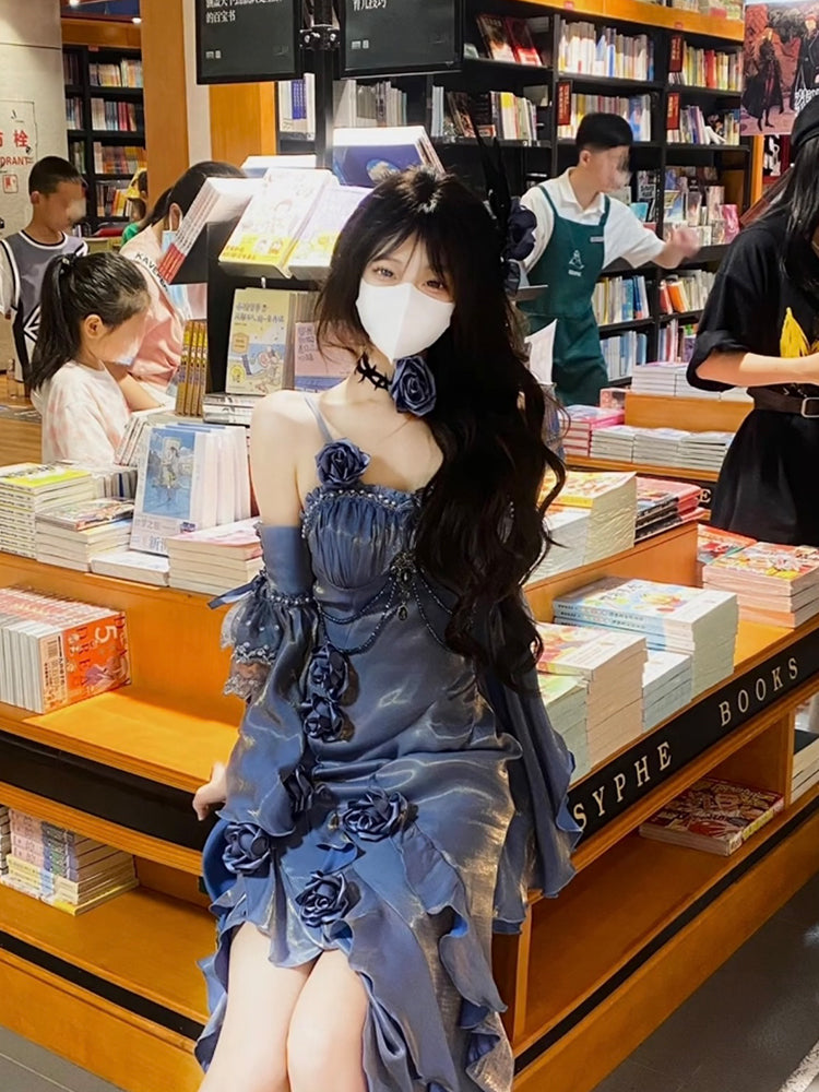 Vintage Mermaid Spaghetti Straps Blue Long Summer 18th Birthday Dress Lolita Dresses Birthday Outfits W1216