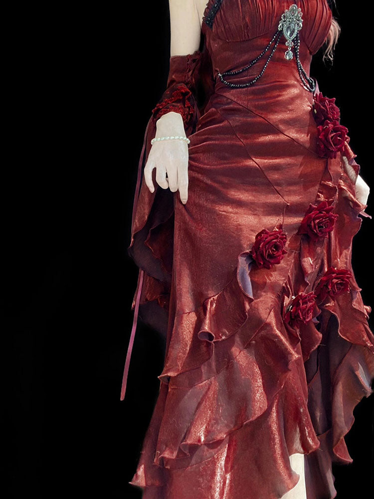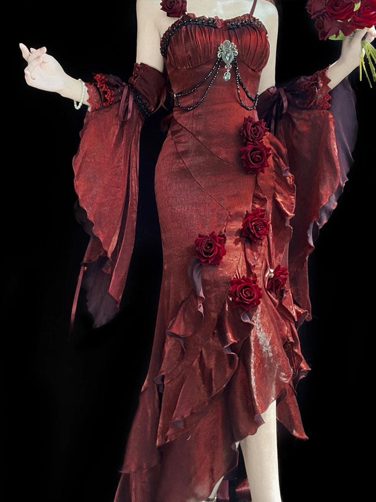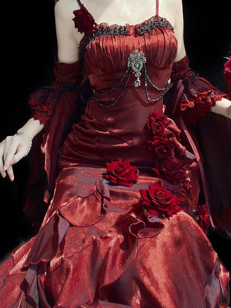 Vintage Mermaid Spaghetti Straps Burgundy Summer 18th Wine Red With Sleeves Birthday Dress Lolita Dress Birthday Outfits W1203