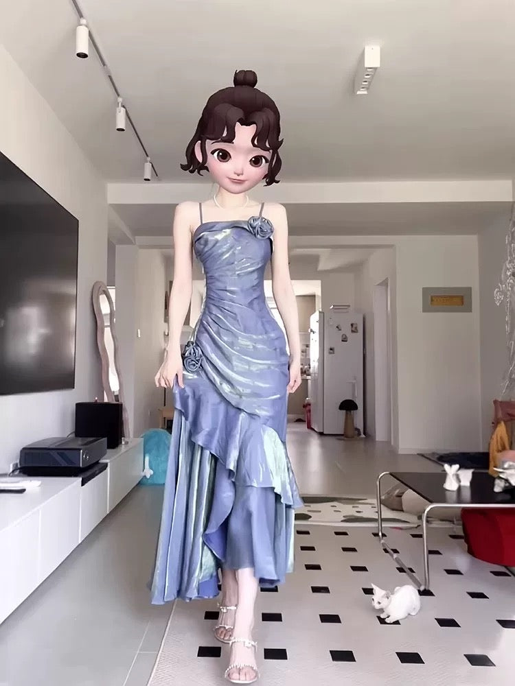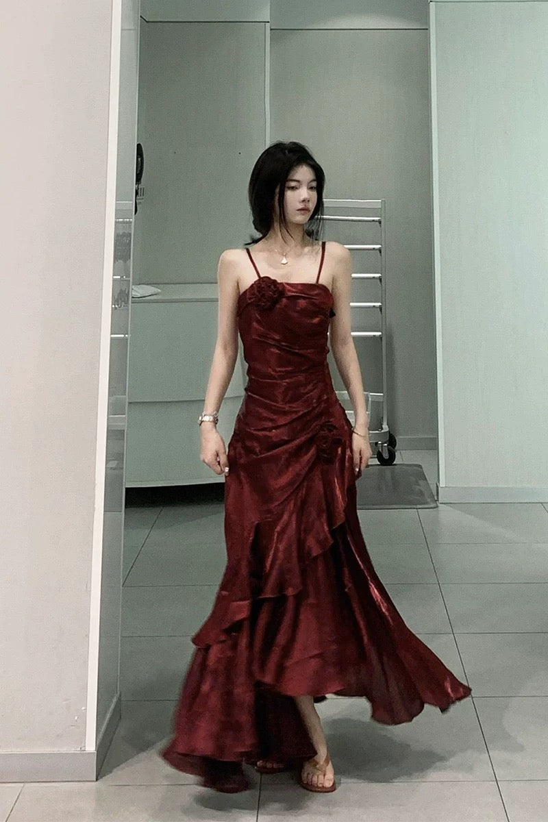 Vintage Mermaid Spaghetti Straps Long Party Dresses Birthday Outfits SD2950