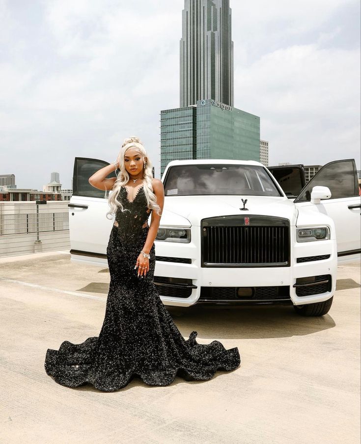 Vintage Mermaid V Neck Black Sequin Sleeveless Long Prom Dresses Party Dress Black Girl Birthday Outfits Graduation Dresses W0442
