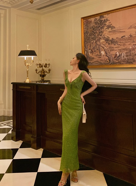 Vintage Mermaid V Neckline Green Floral Sleeveless 18th Birthday Dress Party Gown Birthday Outfits For Women DP0202