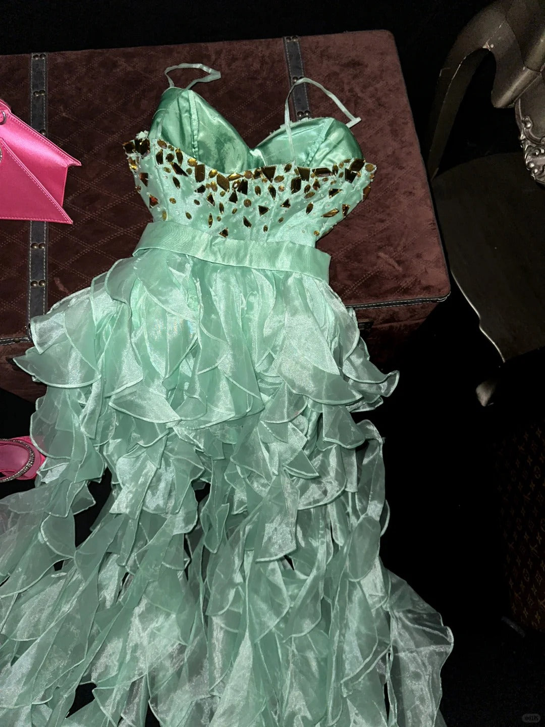 Vintage Mint Green Long Prom Party Dresses Unique Evening Dress cg26074