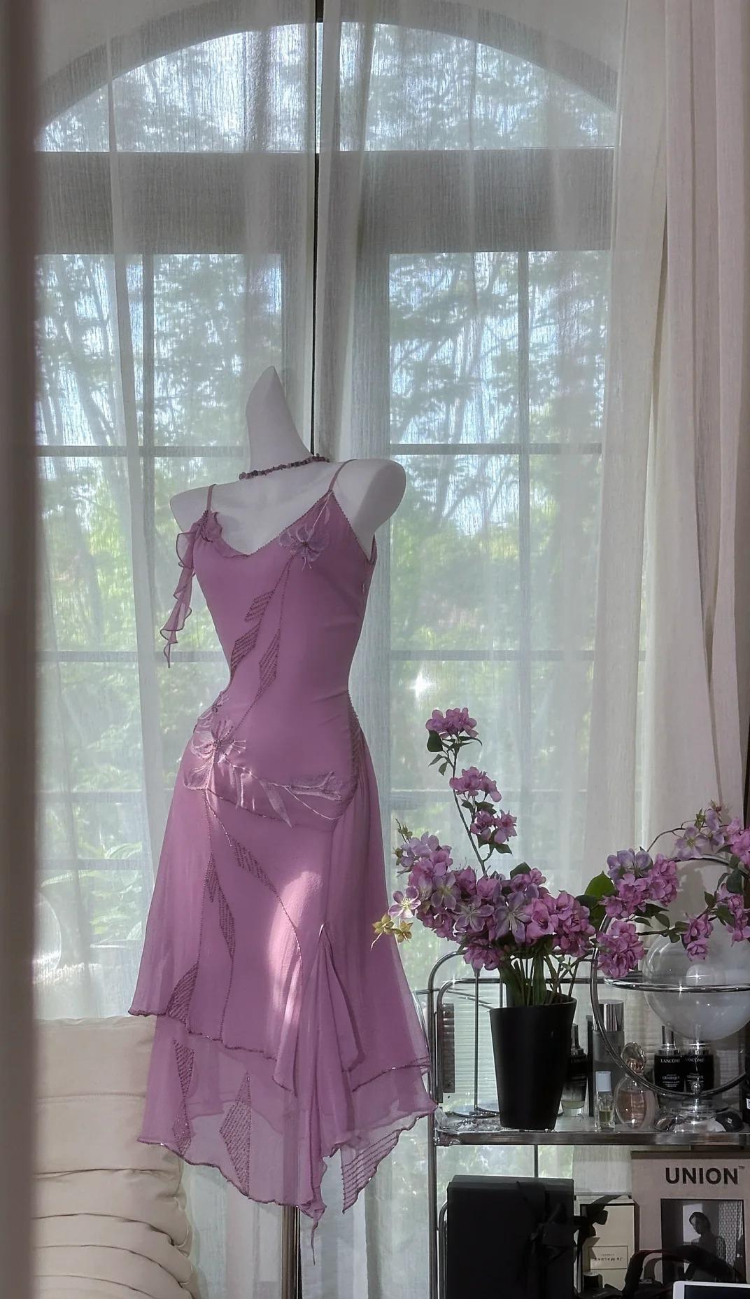 Vintage Purple Spaghetti Straps Chiffon Beading Short Prom Dresses Sweet Party Dresses ED02346
