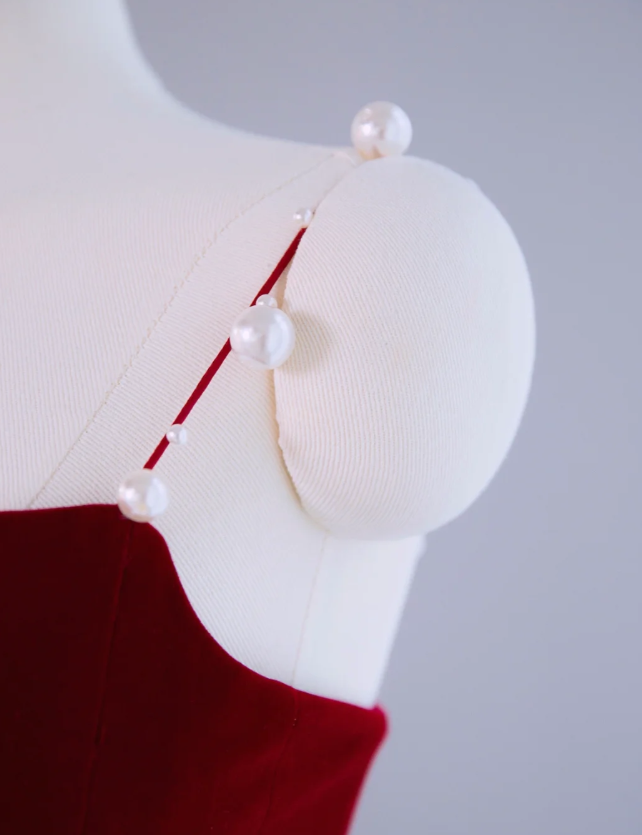 Vintage Red Velvet Ruffle Party Dress Mermaid Birthday Dress S310