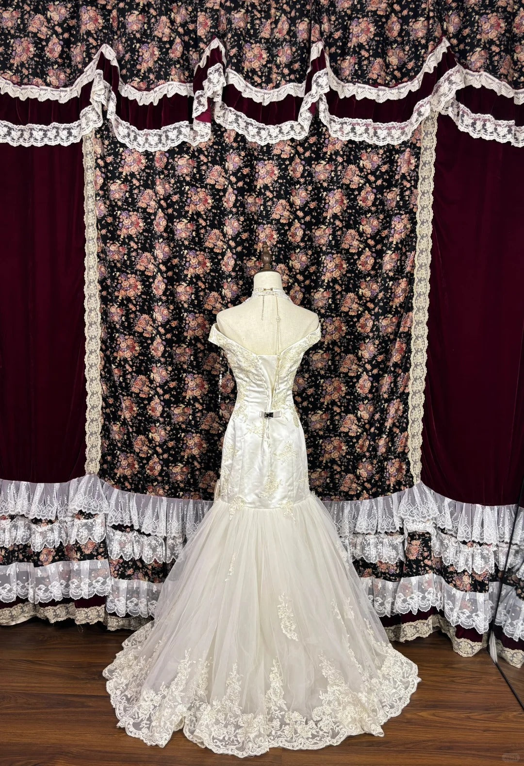 Vintage satin patchwork tulle embroidery and beading one-shoulder mermaid wedding dress P2964
