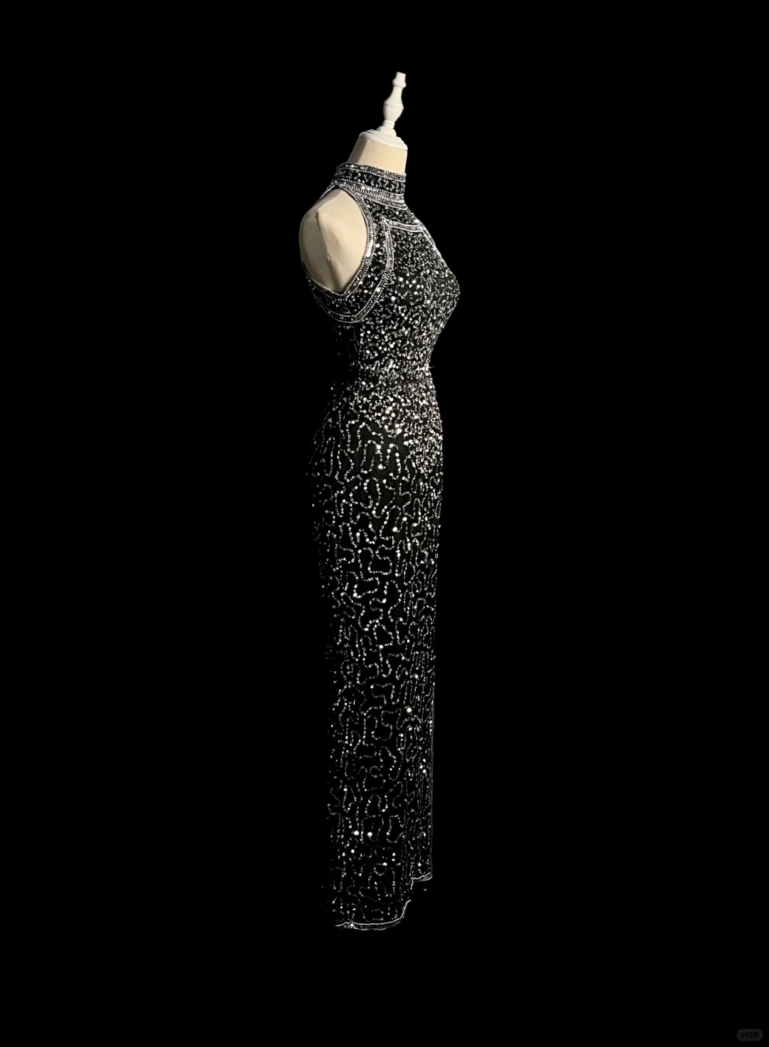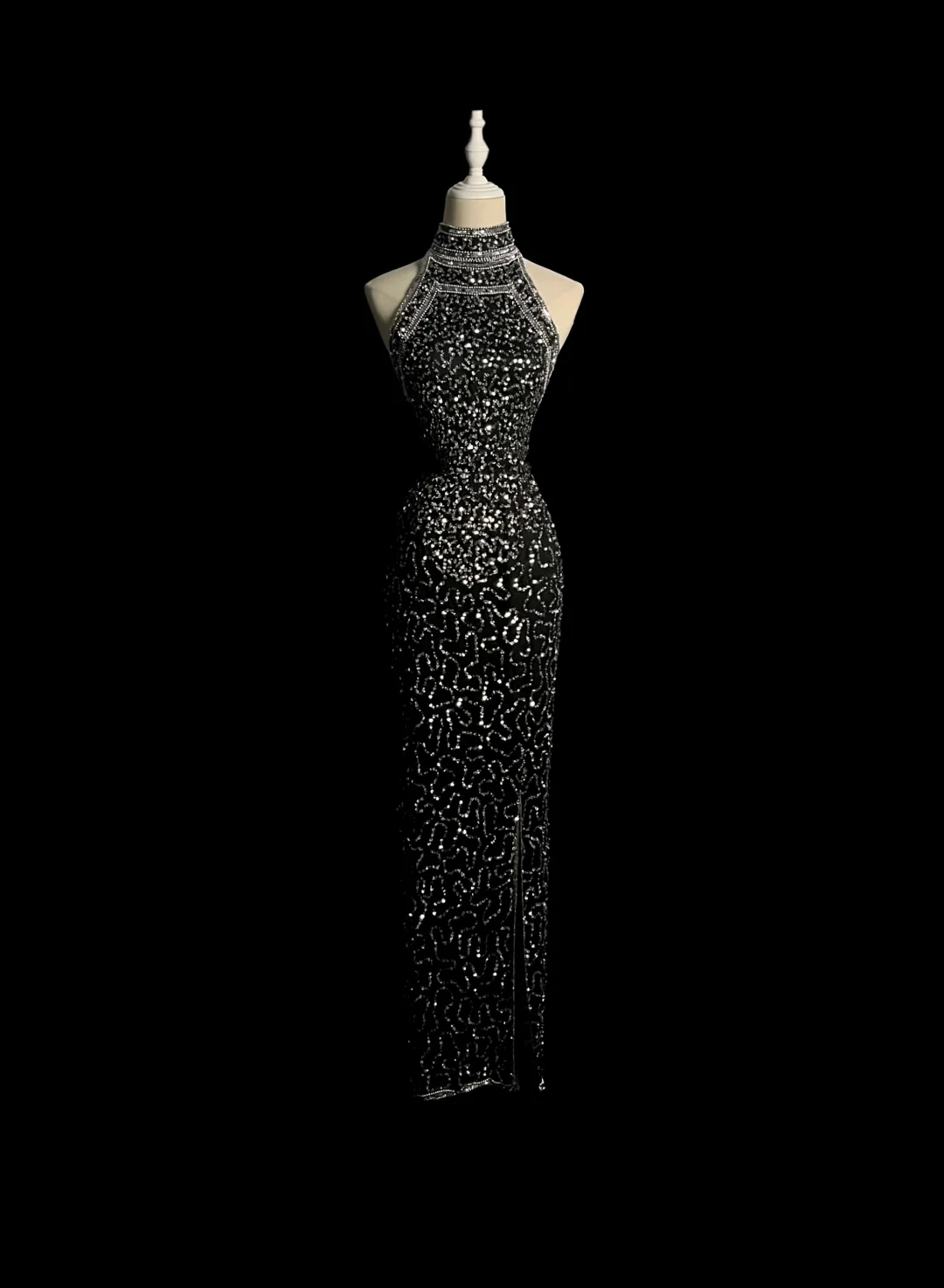 Vintage Sheath High Neck Sequin Long Evening Party Gowns Formal Dresses Prom Dresses DP2038