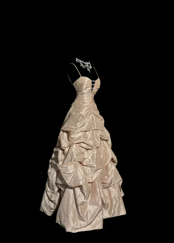Apricot Vintage Spaghetti Straps 90s Long Prom Dresses Party Dress 18th Birthday Outfits Graduation Dresses SH3505