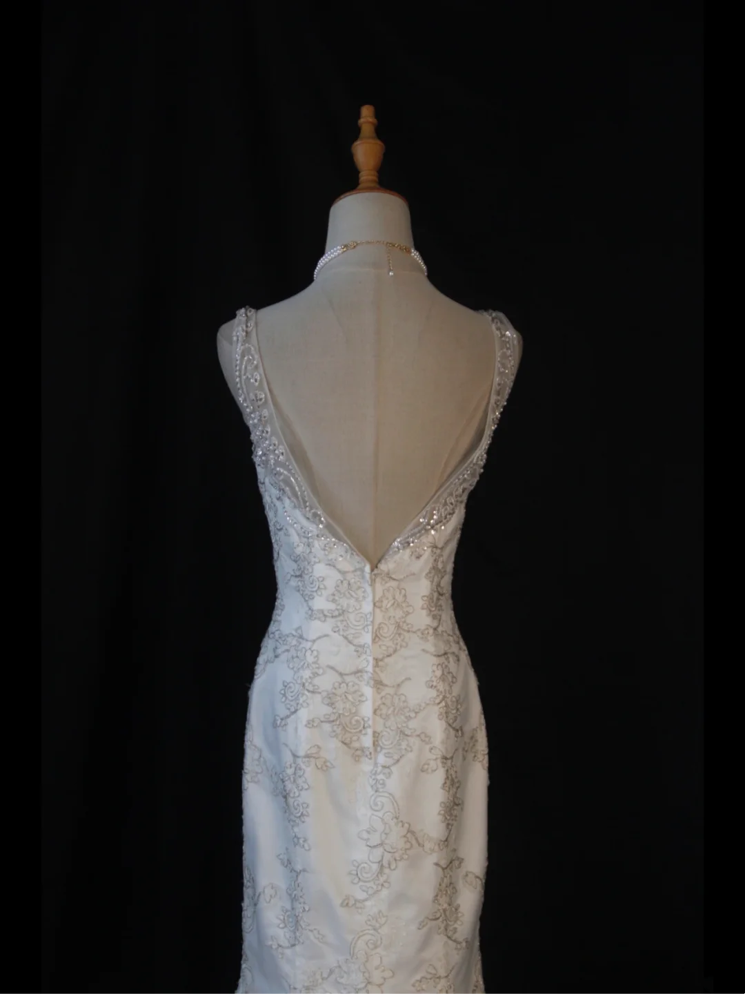 Vintage Wedding Dress 1970s Mermaid V Neck White Lace Long Wedding Dresses Bridal Gowns Elegant Brides Gown DH578