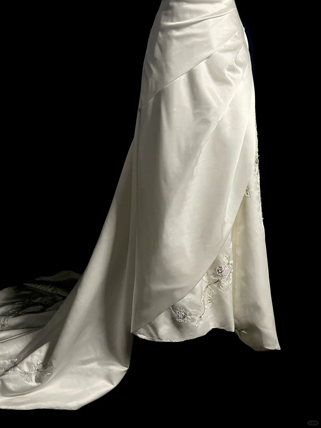 Vintage Wedding Dress A line Strapless White Satin Long Wedding Dresses Retro 1970s Bridal Gowns DP2039