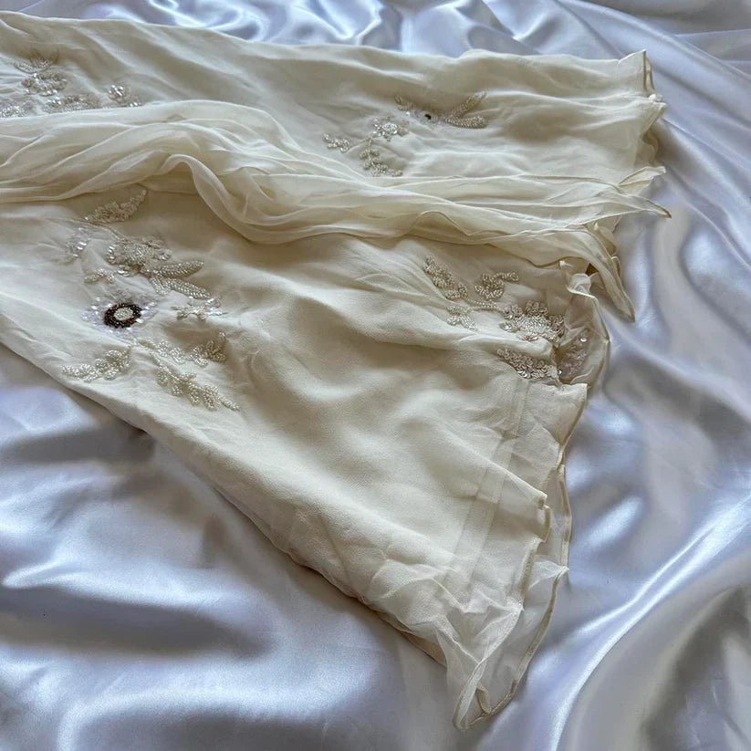 Vintage White Spaghetti Straps Chiffon Sheath Gentle Prom Dresses with Beading ED01985