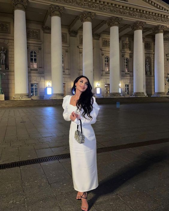 White Evening Dresses Tea Length Satin Prom Party Gowns fg5650
