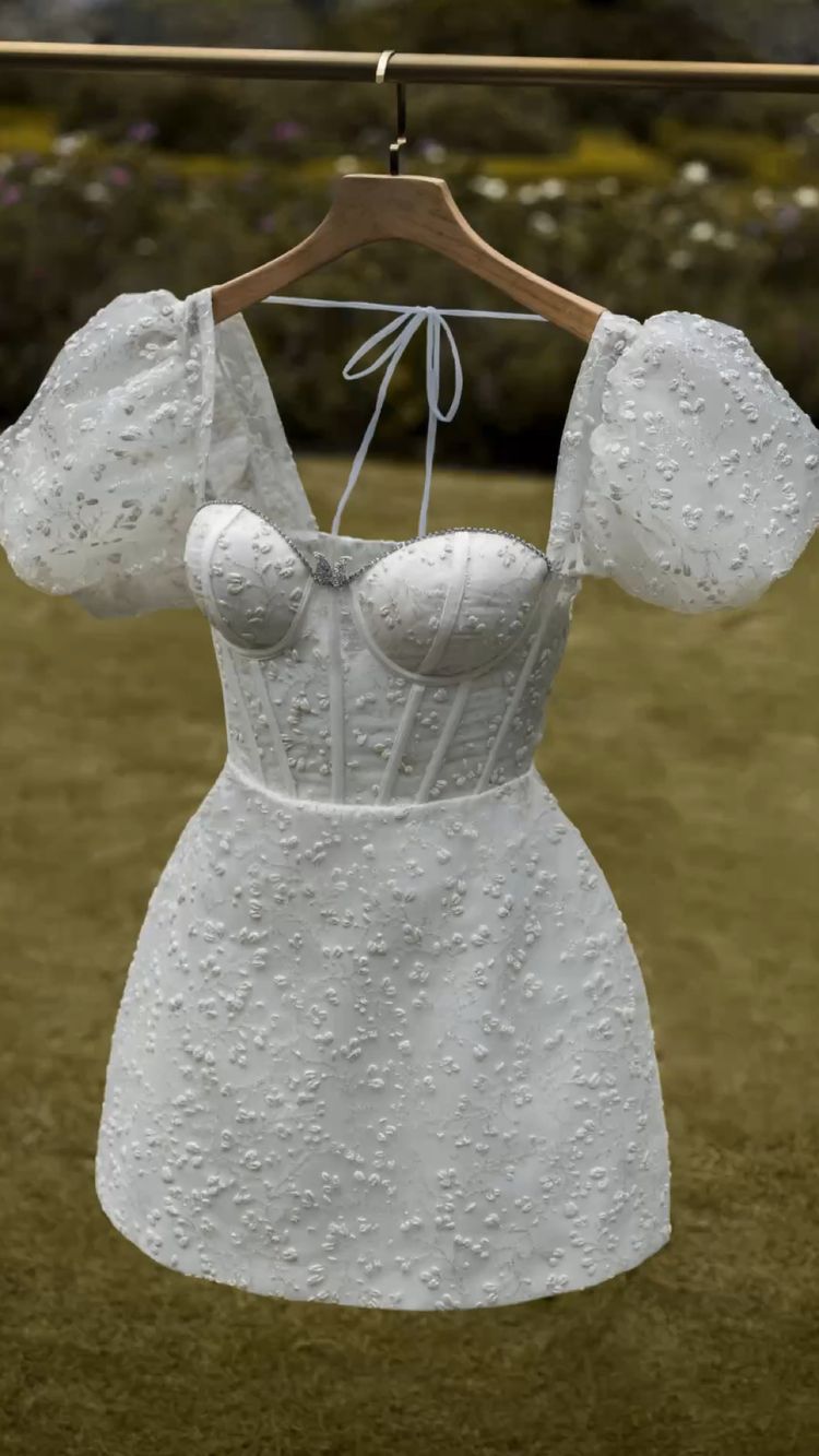 White Homecoming Dress, Princess Strapless Short Prom Dress Short Wedding Dress fg842