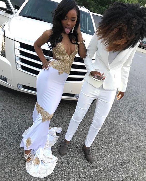 White Spaghetti Strap With Appliques Prom Dress cg13468