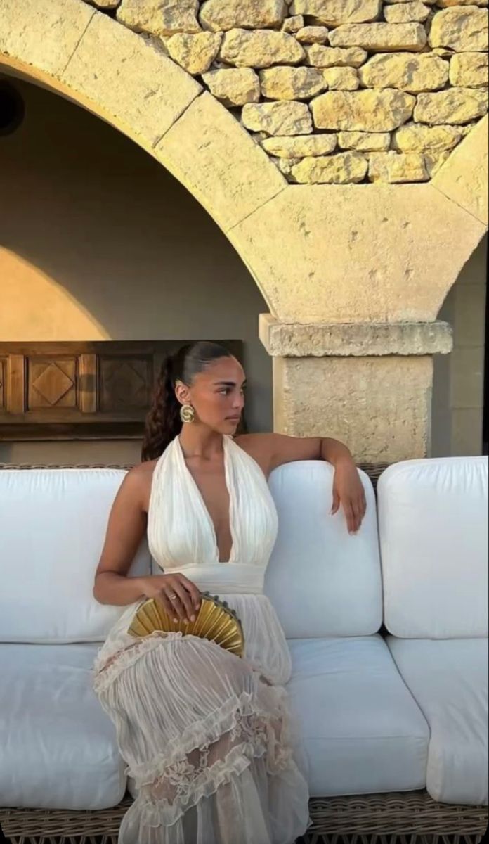 White V-neck tulle lace long elegant sexy ball gown evening dress party dress gh3048