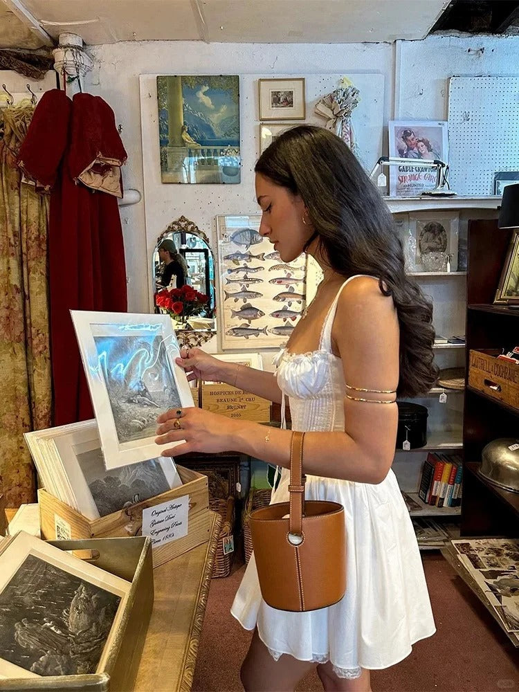White Vintage Suspender Mini Birthday Party Homecoming Dress P3129