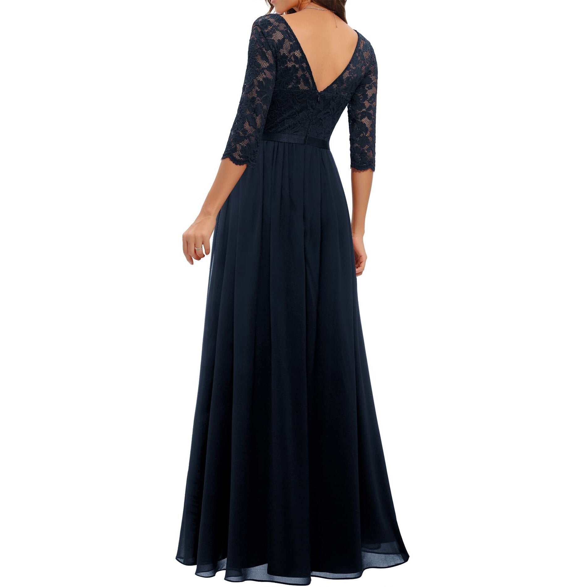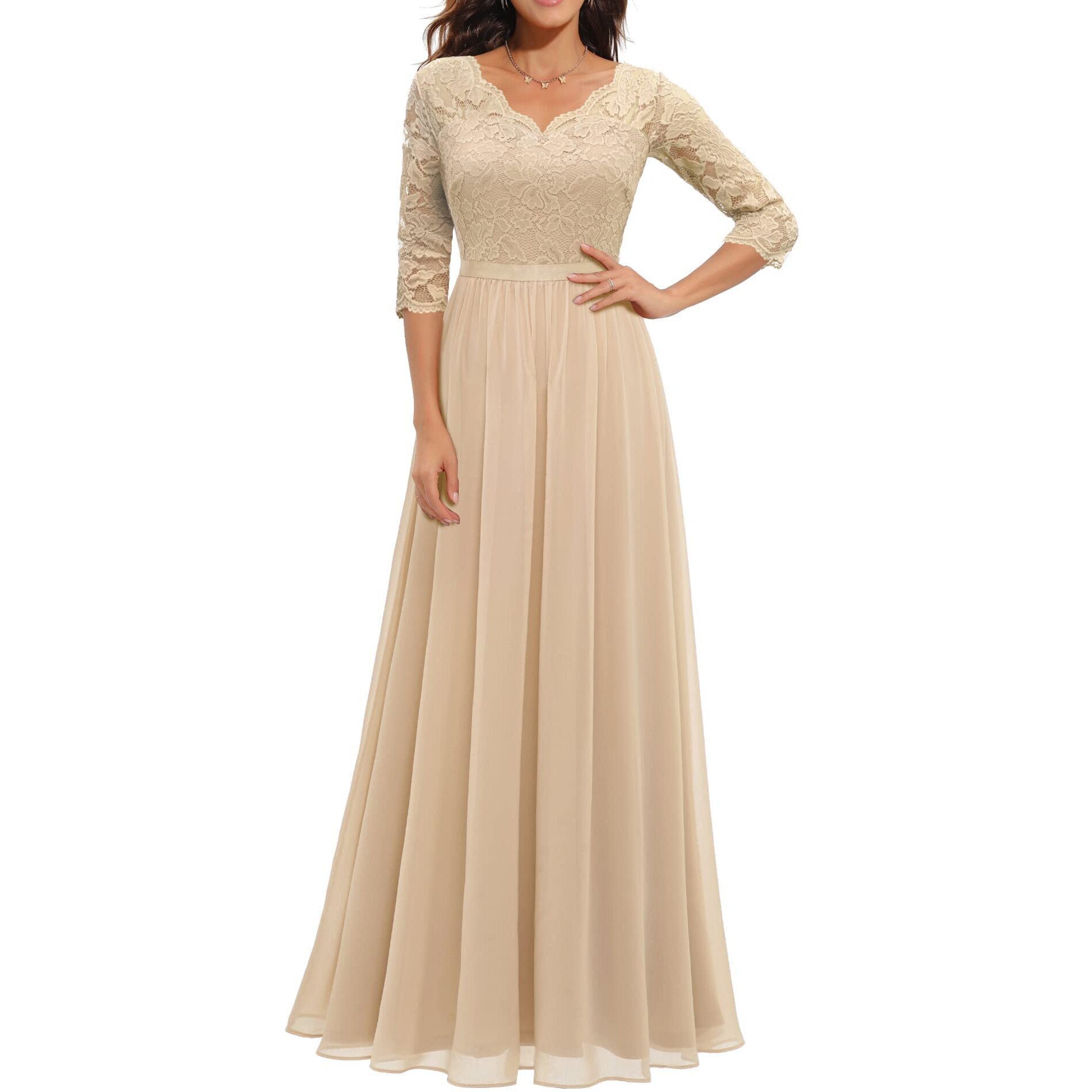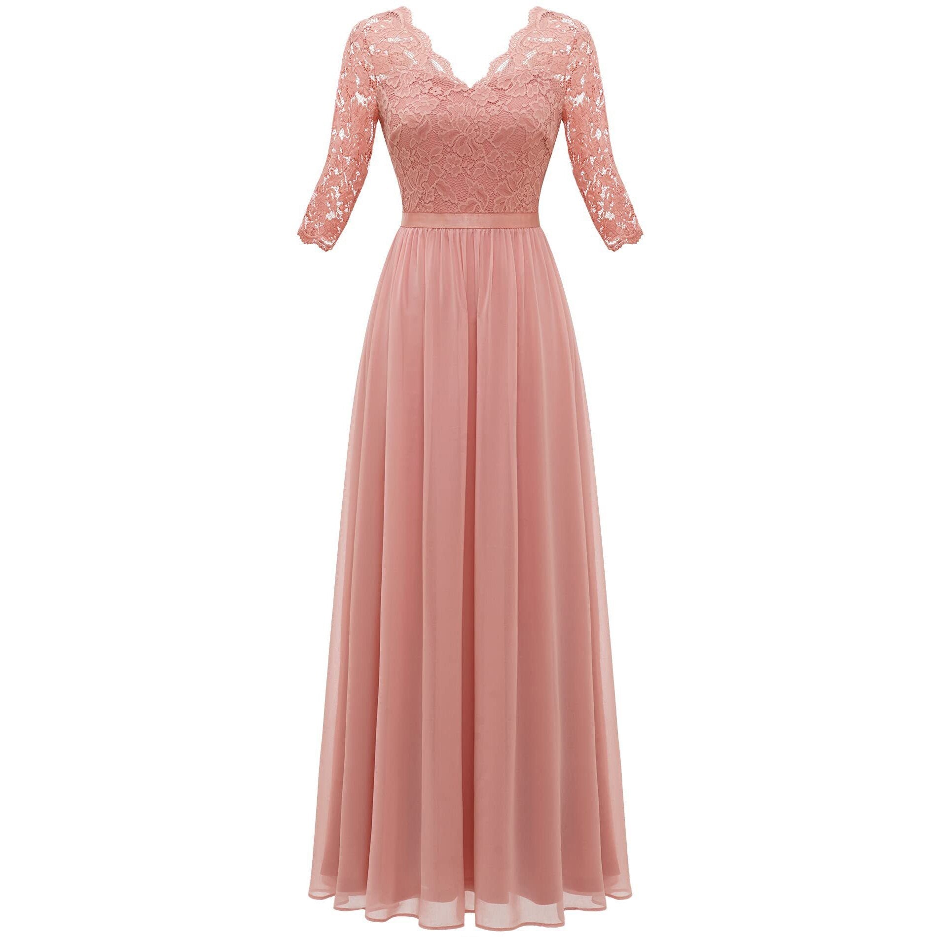 loveedsTM- Women's Elegant Vintage V Neck 3/4 Sleeve Floral Lace Chiffon Wedding Bridesmaid Maxi Dress Long Formal Dresses