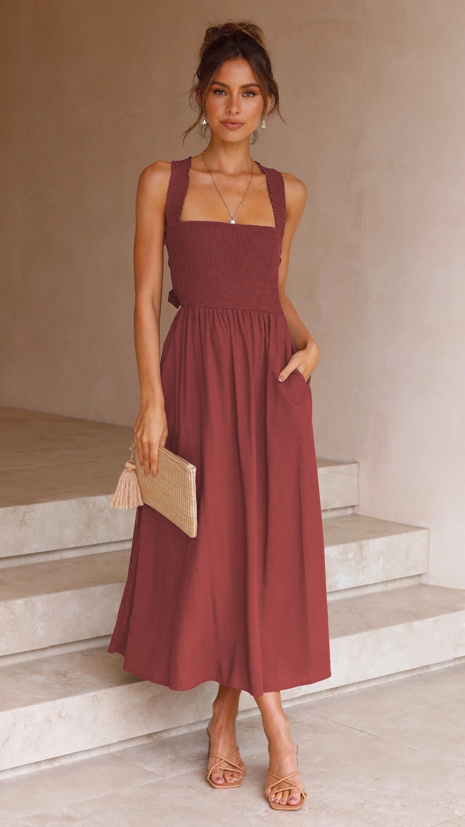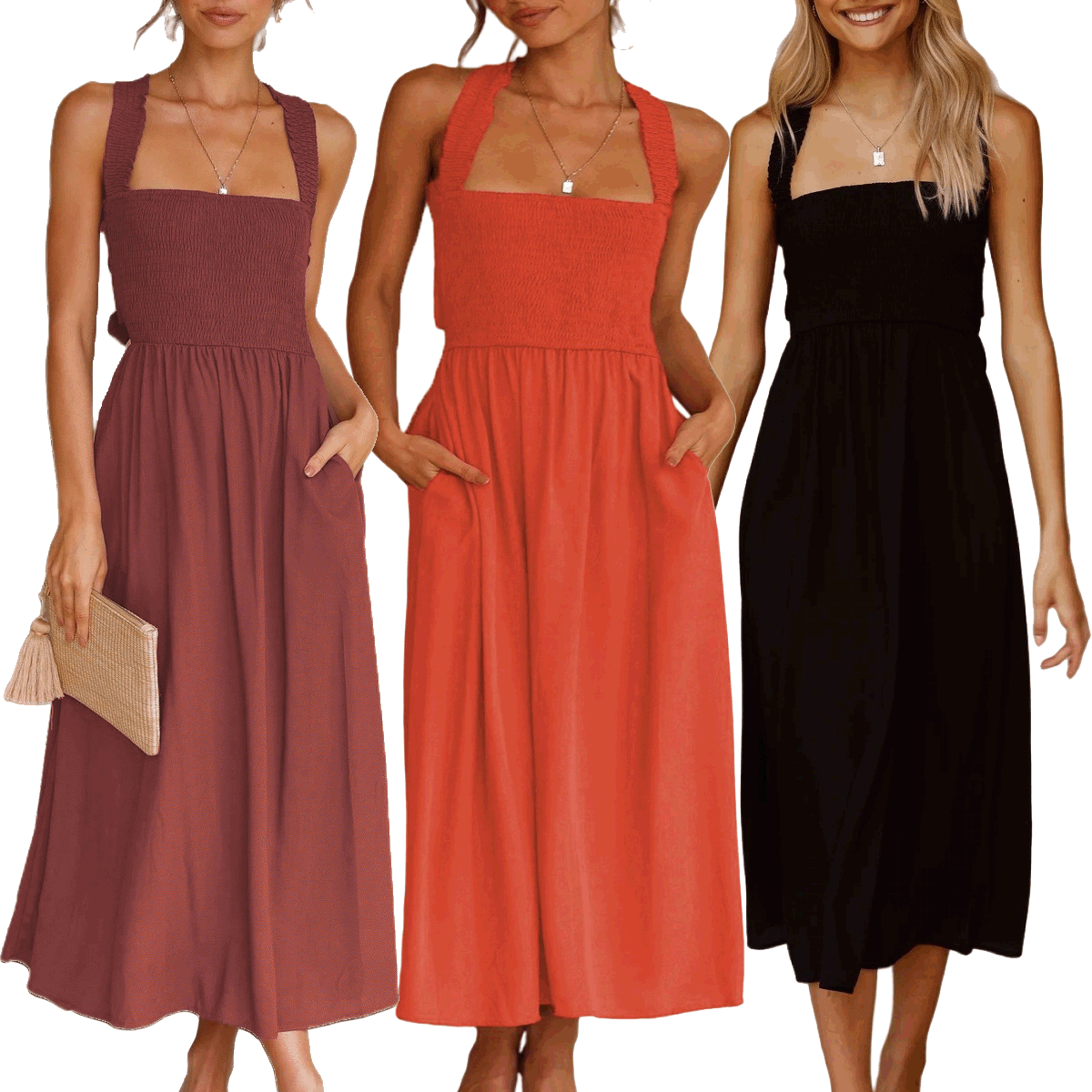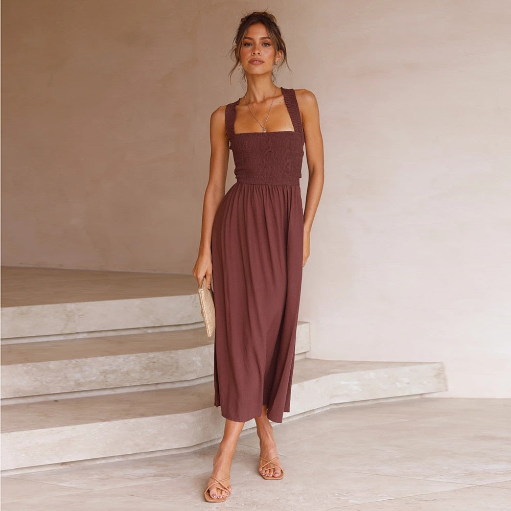 loveedsTM-Women Cross Bandage Midi Dress Summer New Sexy Backless Solid Color Bow Casual High Waist Black Stretchy Party Holiday Vestidos