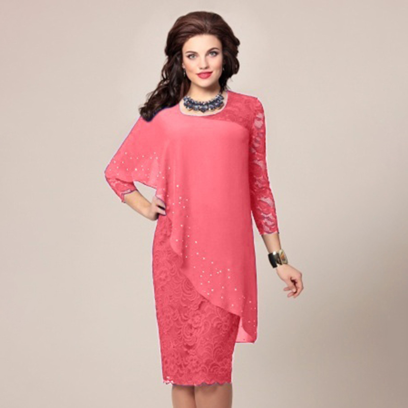 loveedsTM-Women Elegant Party Dress Oversized Chiffon Lace Vestidos De Fiesta Evening Three Quarter Robes De Soirée Formal Vetement Femme