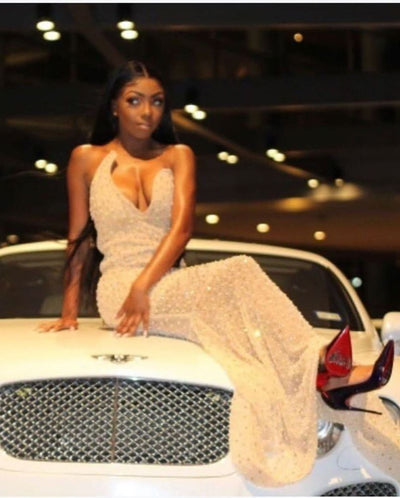 WOMEN SWEETHEART CTYSTAL SLEEVELESS SLIM PROM DRESS SAS43