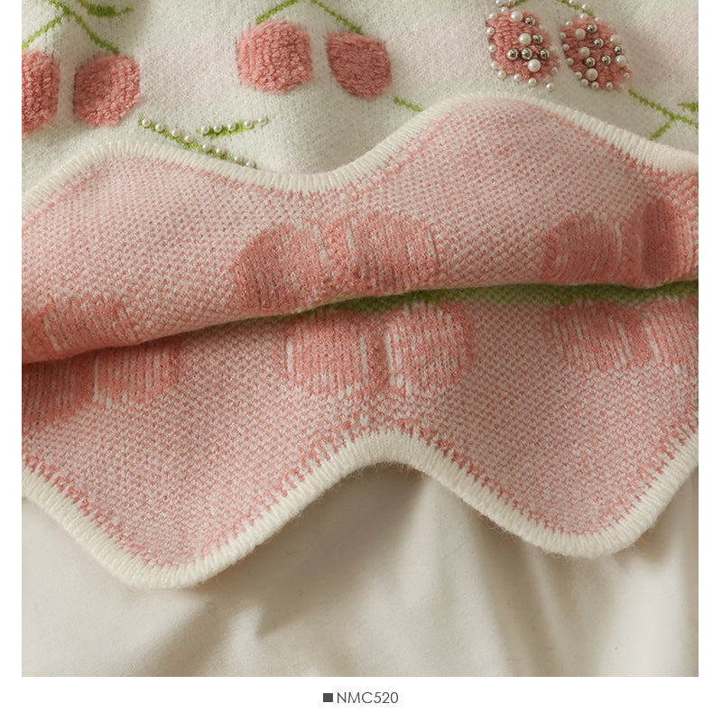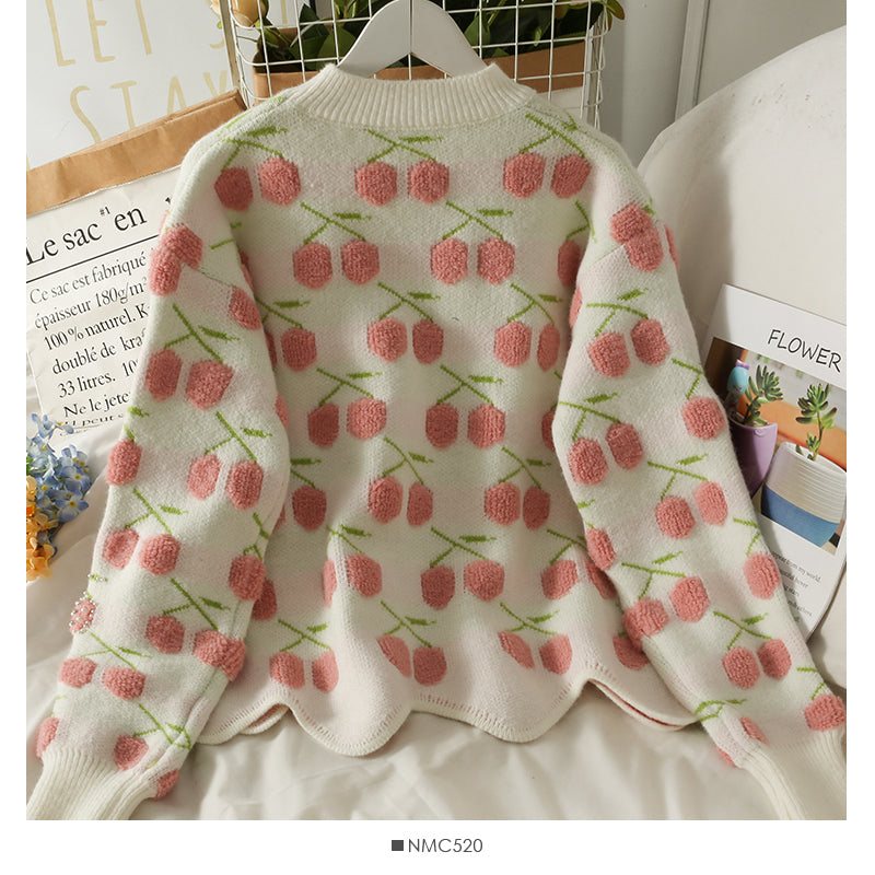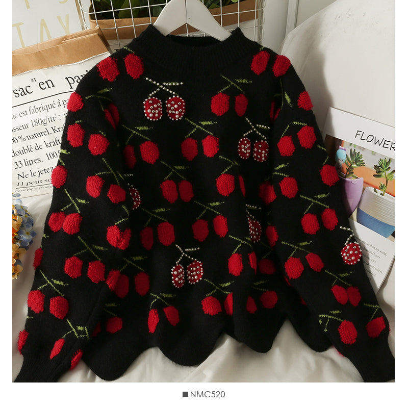 Women's autumn bound Beaded loose thin sweater with wavy edge 1747