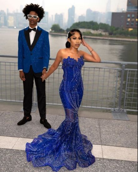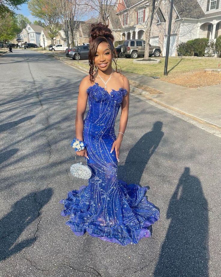 Women's Mermaid Prom Dress, Sweetheart Sequin Royal Blue Birthday Party Dress fg6762