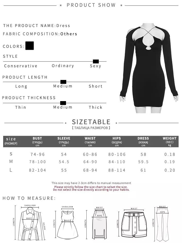 Sexy Hollow Halter Lace Up Black Bodycon Mini Dress Women Fashion Cross Backless Long Sleeve Party Club Clothes For Female