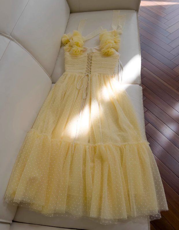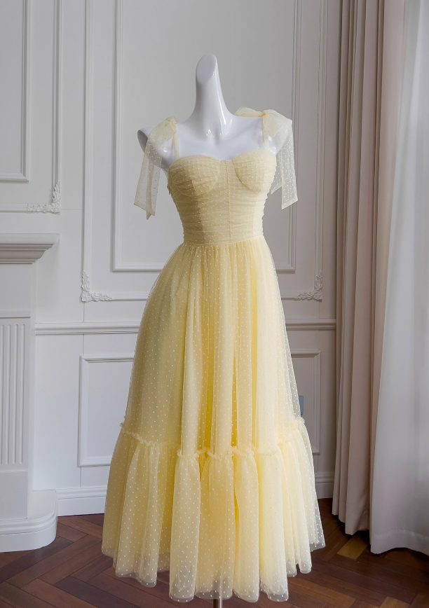 Yellow A-line sweetheart neck tulle short prom dress, yellow homecoming dress ED01156