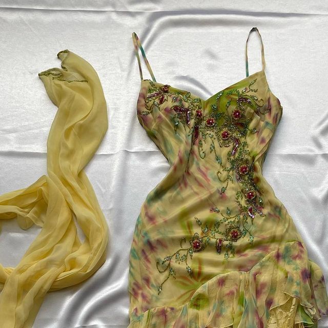 Yellow fashion elegant exquisite beaded spaghetti strap tulle long ruffled lace ball gown evening dress party dress prom dress gh3187