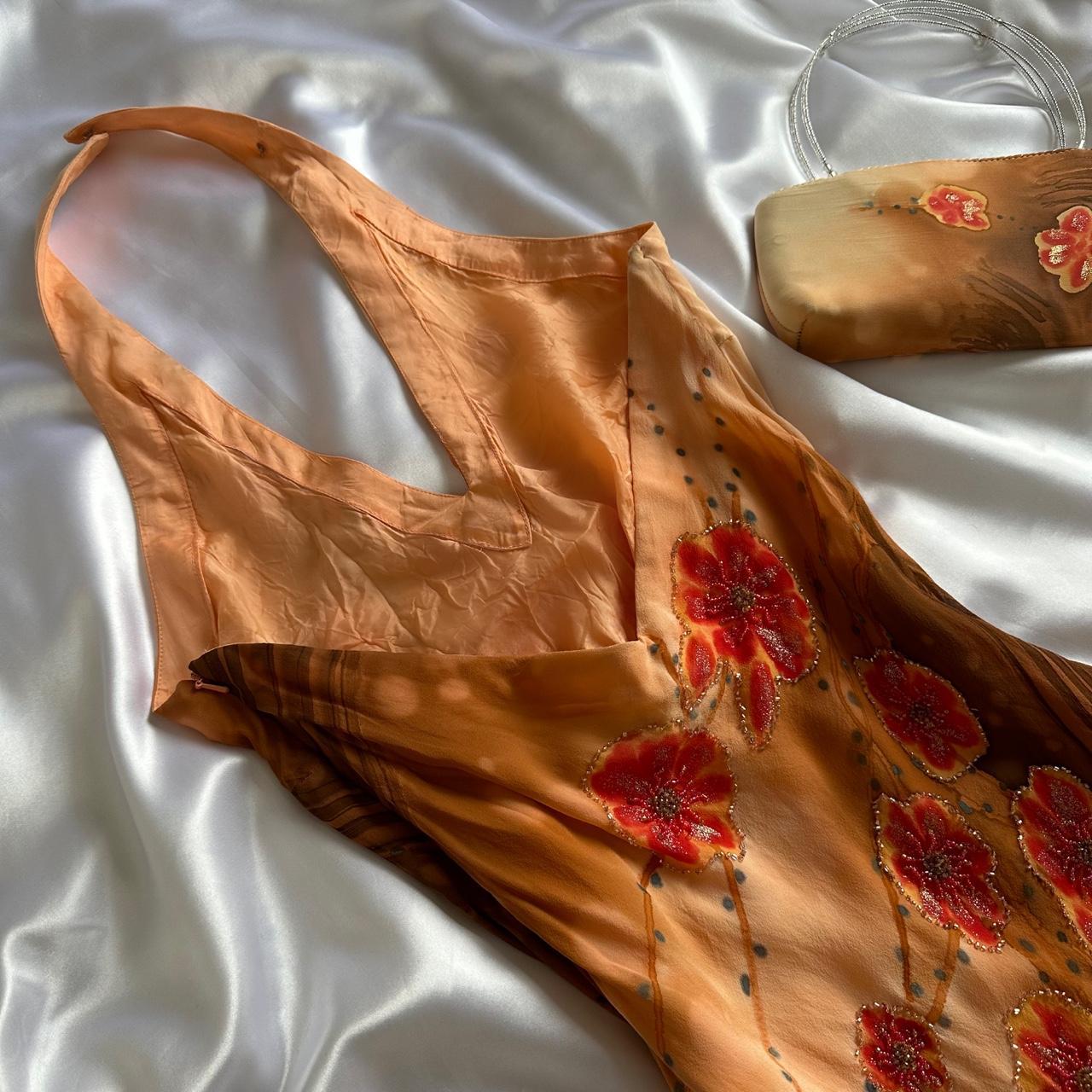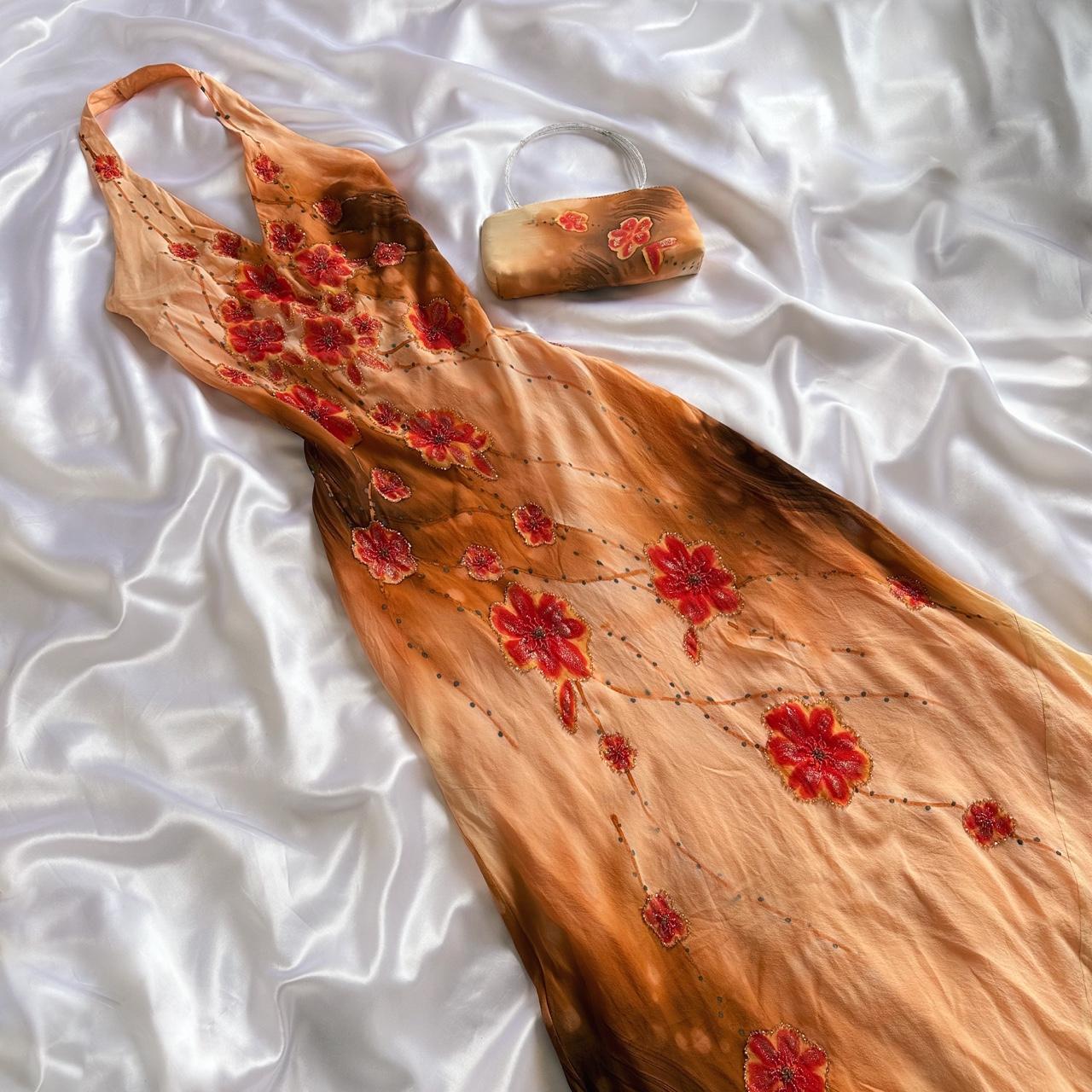 Orange Yellow fashion halter floral beading long elegant chiffon ball gown evening dress gh3284