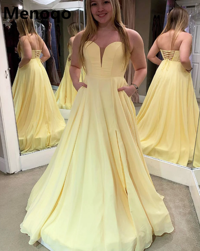 Yellow Floor Length Ball Gown Prom Dresses Y1040