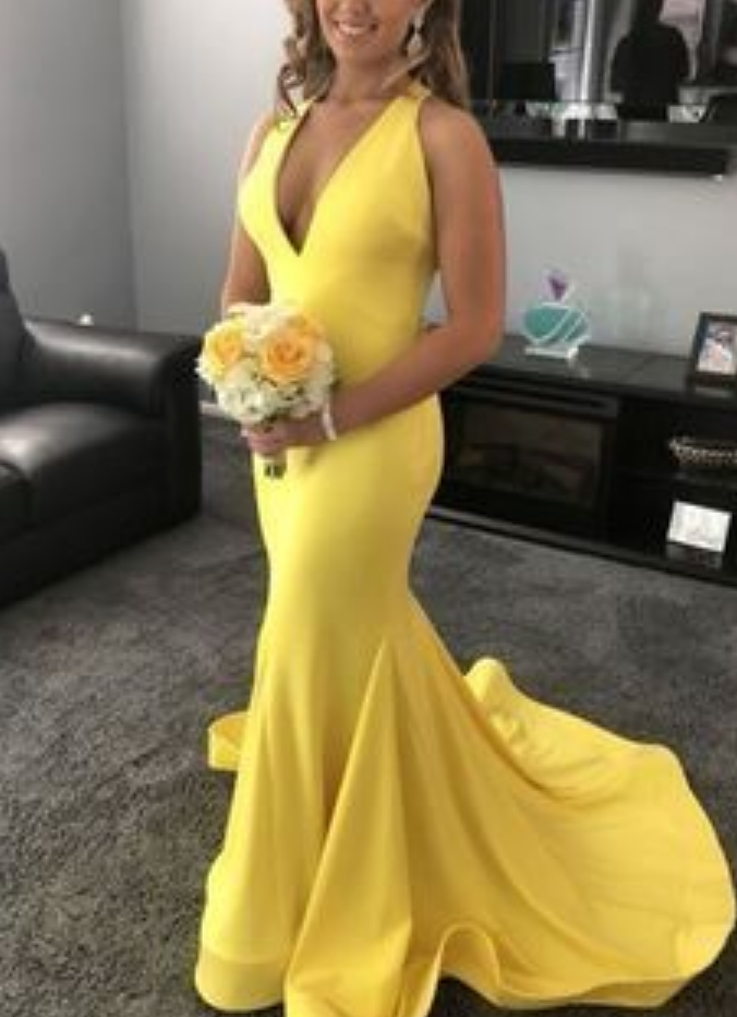 yellow mermaid formal evening dress Long Prom Dresses P01817