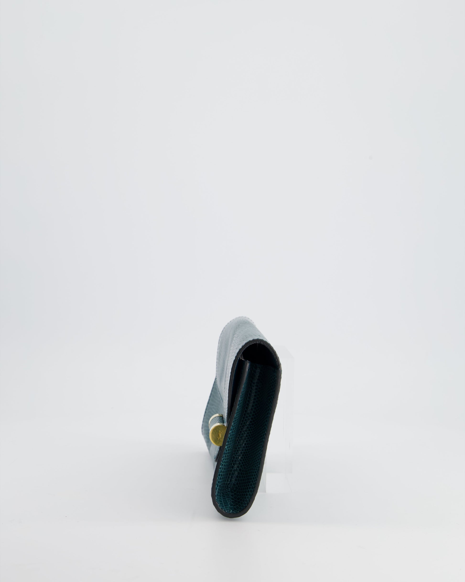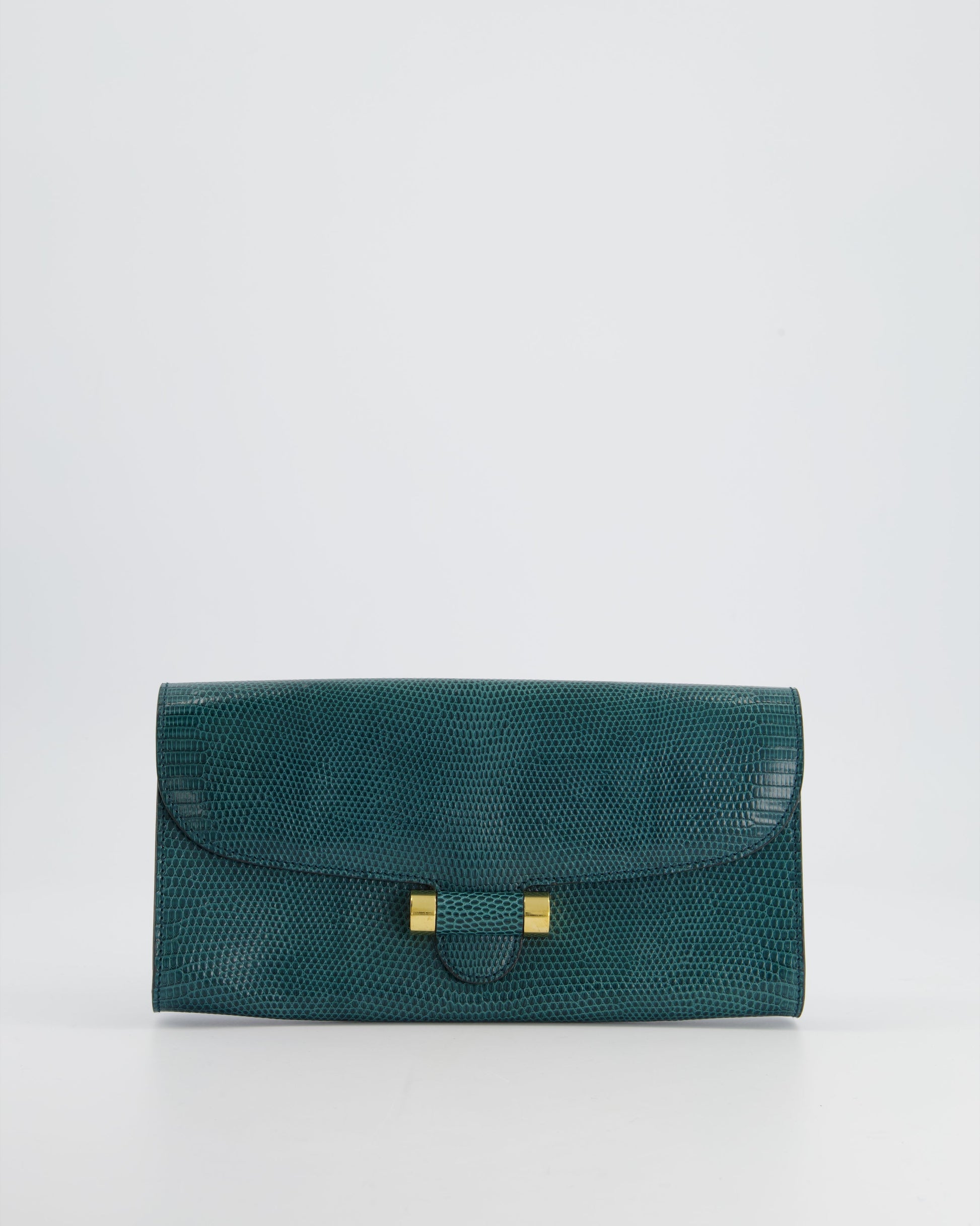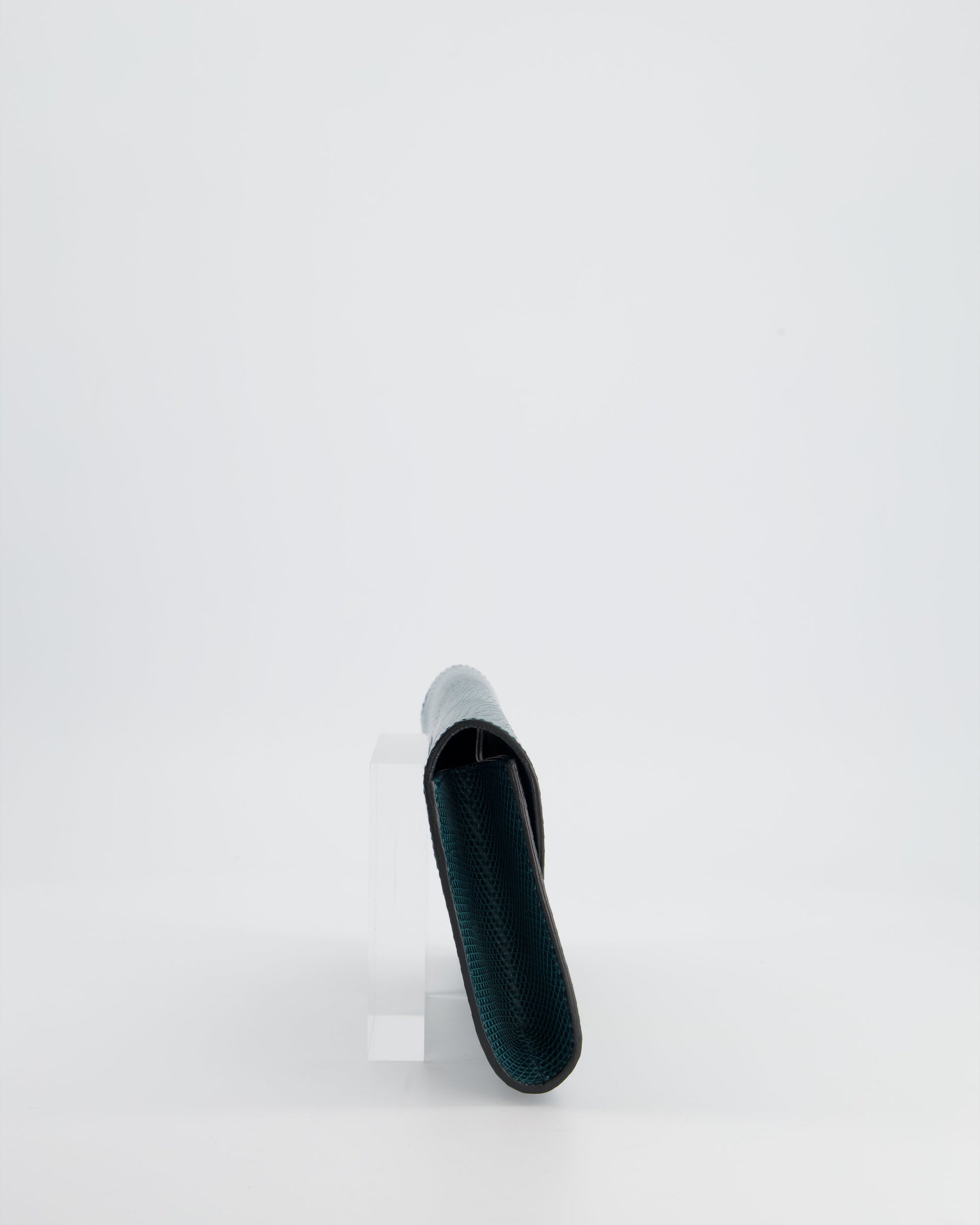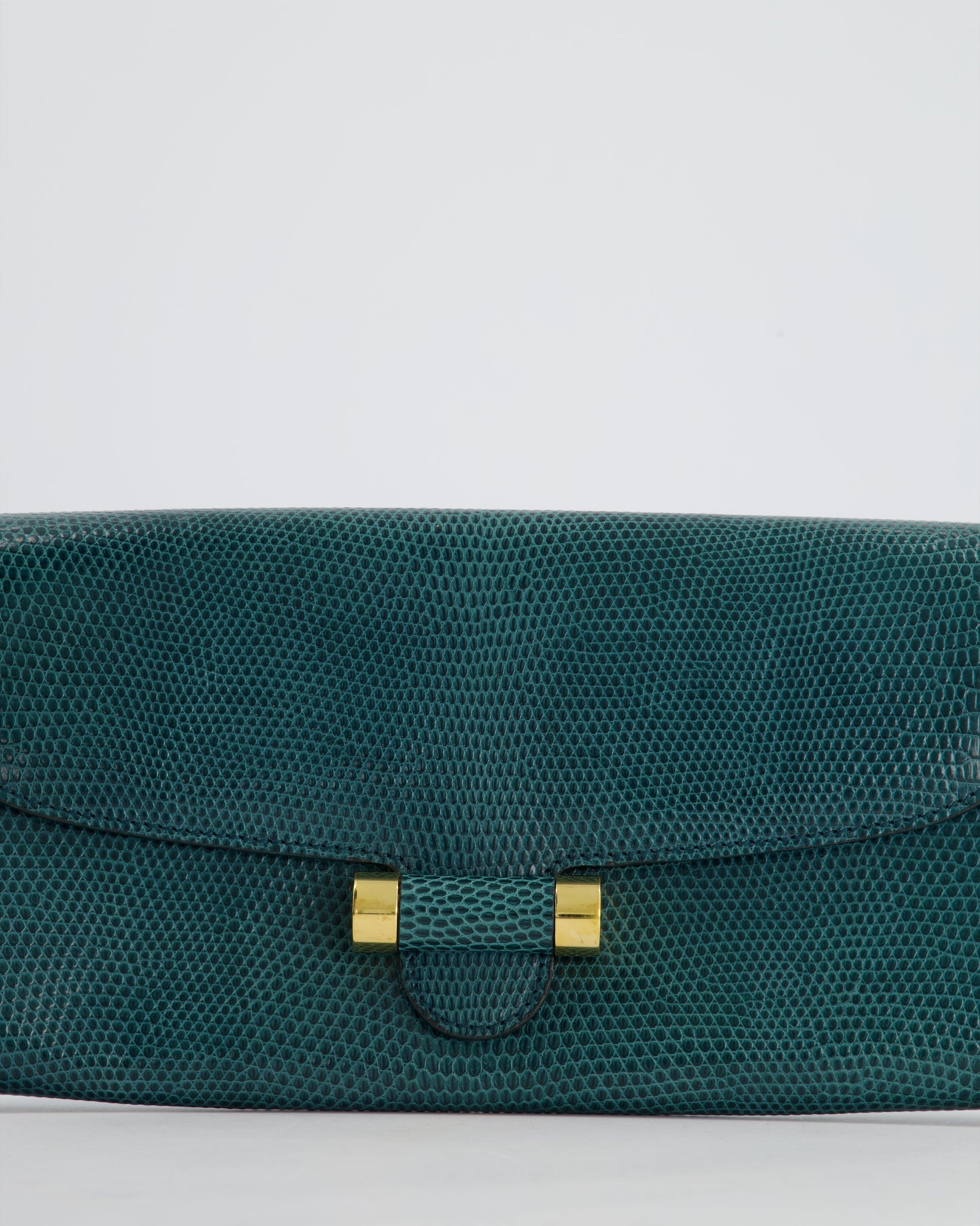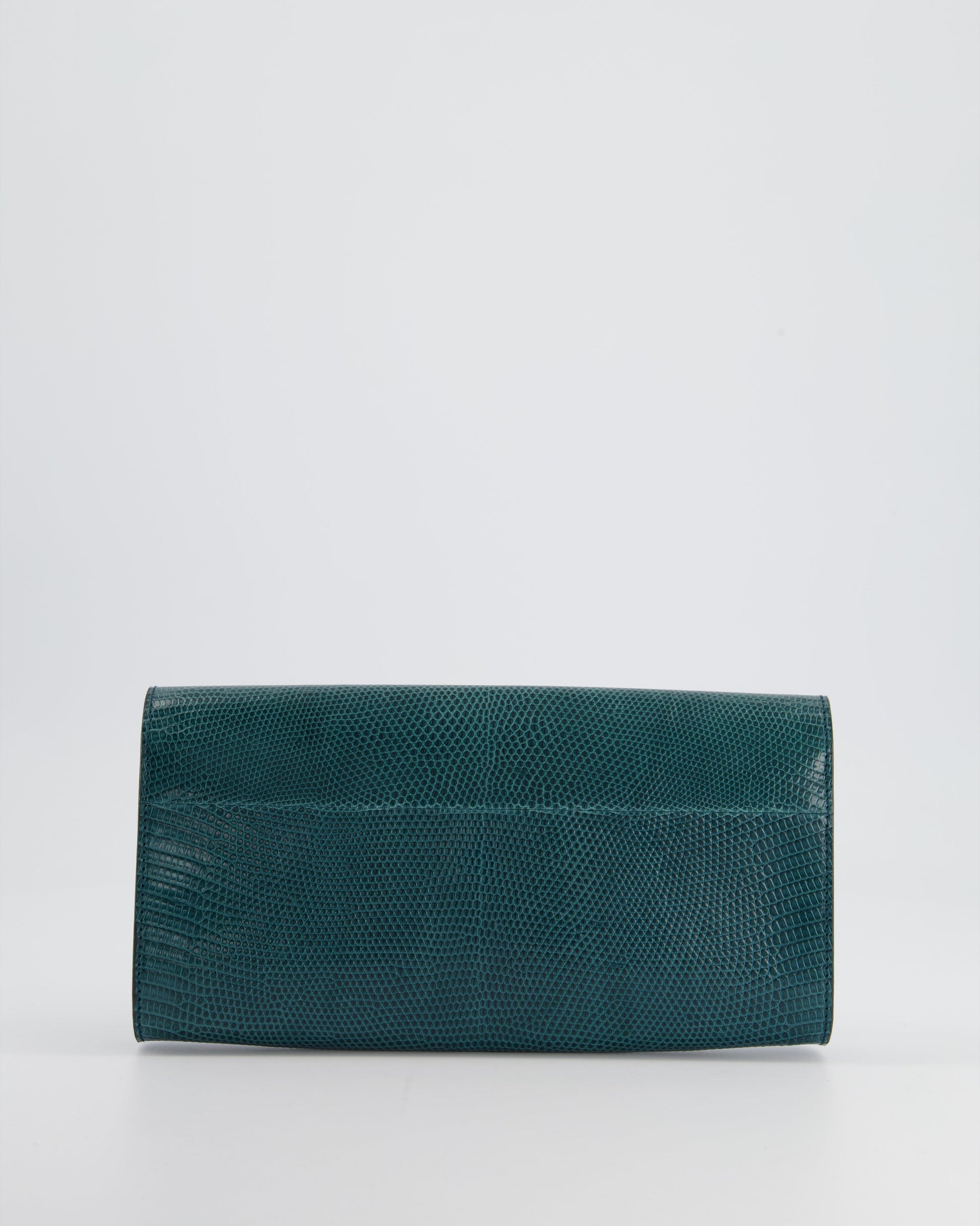Yves Saint Laurent Emerald Green Lizard Clutch with Gold Hardware